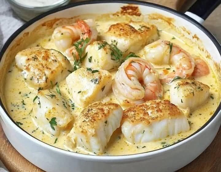 Shrimp and Cod in Creamy Garlic Sauce is comforting, flavorful, and just the right amount of indulgent—perfect for any seafood lover.